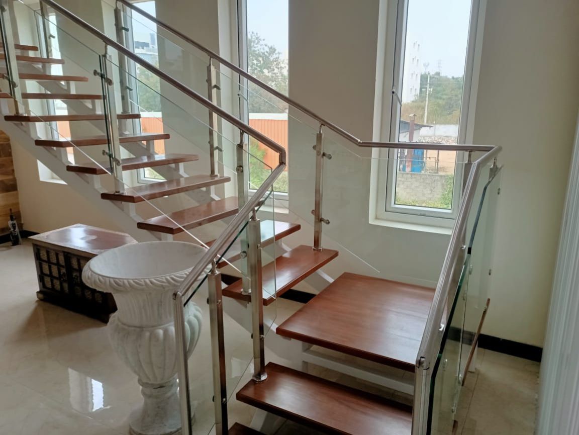 We have the expertise and experience in every aspect of stainless steel hand-railings and glass staircases in both Commercial and Residential spaces. Our world-class quality finish is the result of Japanese and European standards 316, 304,Stainless steel polished to perfection through a process that is an outcome of in house R&D.